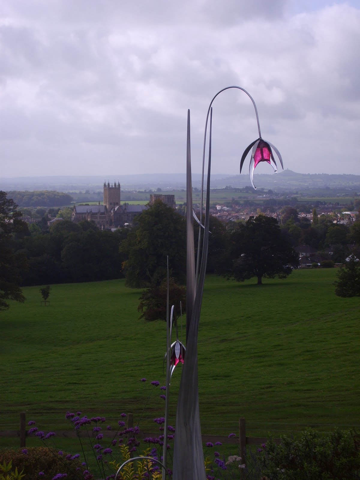 "The shed theme for me has manifested itself in several ways from a series of landscape paintings made in a shed last year to 'Shed Gateway' and 'Heartseaese', two works made from stakes designed to change colour when viewed from different sides."-Tim Martin